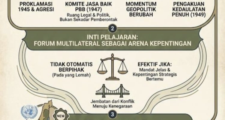 Board of Peace dan Palestina Merdeka: Belajar dari Sejarah “Committee of Good Offices” dan Sejarah Indonesia Merdeka Internasional|February 20, 2026by Syafrudin Budiman Khairul Fahmi, co-founder ISESS Kitabaru.com, Jakarta – Kemerdekaan Indonesia tidak lahir