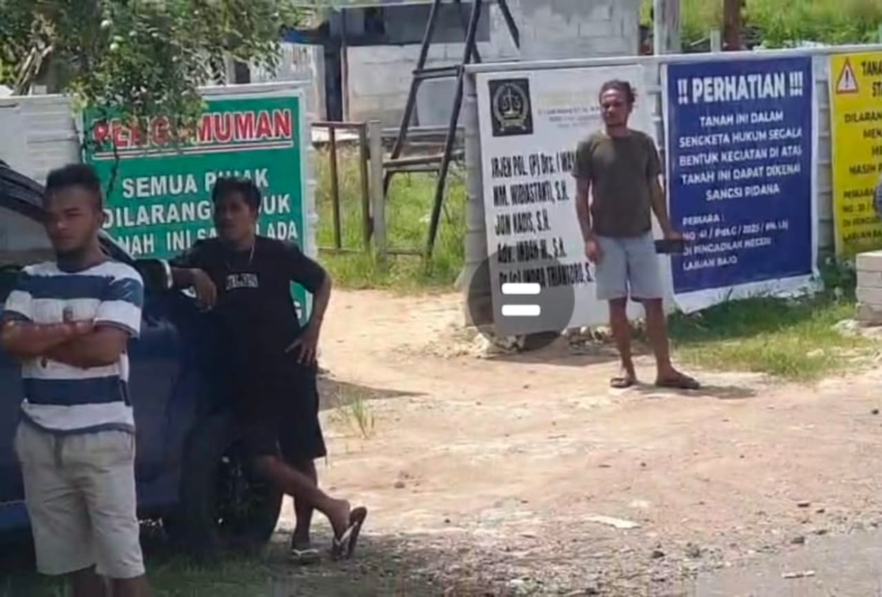 Kitabaru.com, Jakarta – Inilah babak baru konflik di tanah 4,1 ha Bukit Kerangan Labuan Bajo. Diduga aekelompok preman tak dikenal masyarakat Labuan Bajo menghadang pemilik tanah, yang mendrop material untuk bangun Musholla yang di drop di luar pagar, Sabtu (3/1/2026).