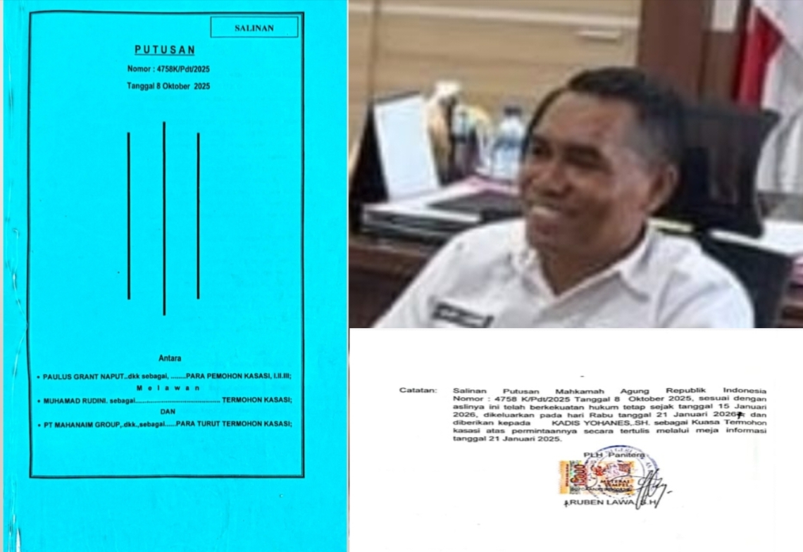 Florianus Surion Adu selaku kuasa dari Muhamad Rudini (Ahli Waris Alm. Ibrahim Hanta) menjelaskan bahwa dalam amar kasasi, MA menolak permohonan Paulus Grant Naput, Maria Fatmawati Naput, dan Erwin Kadiman Santosa.