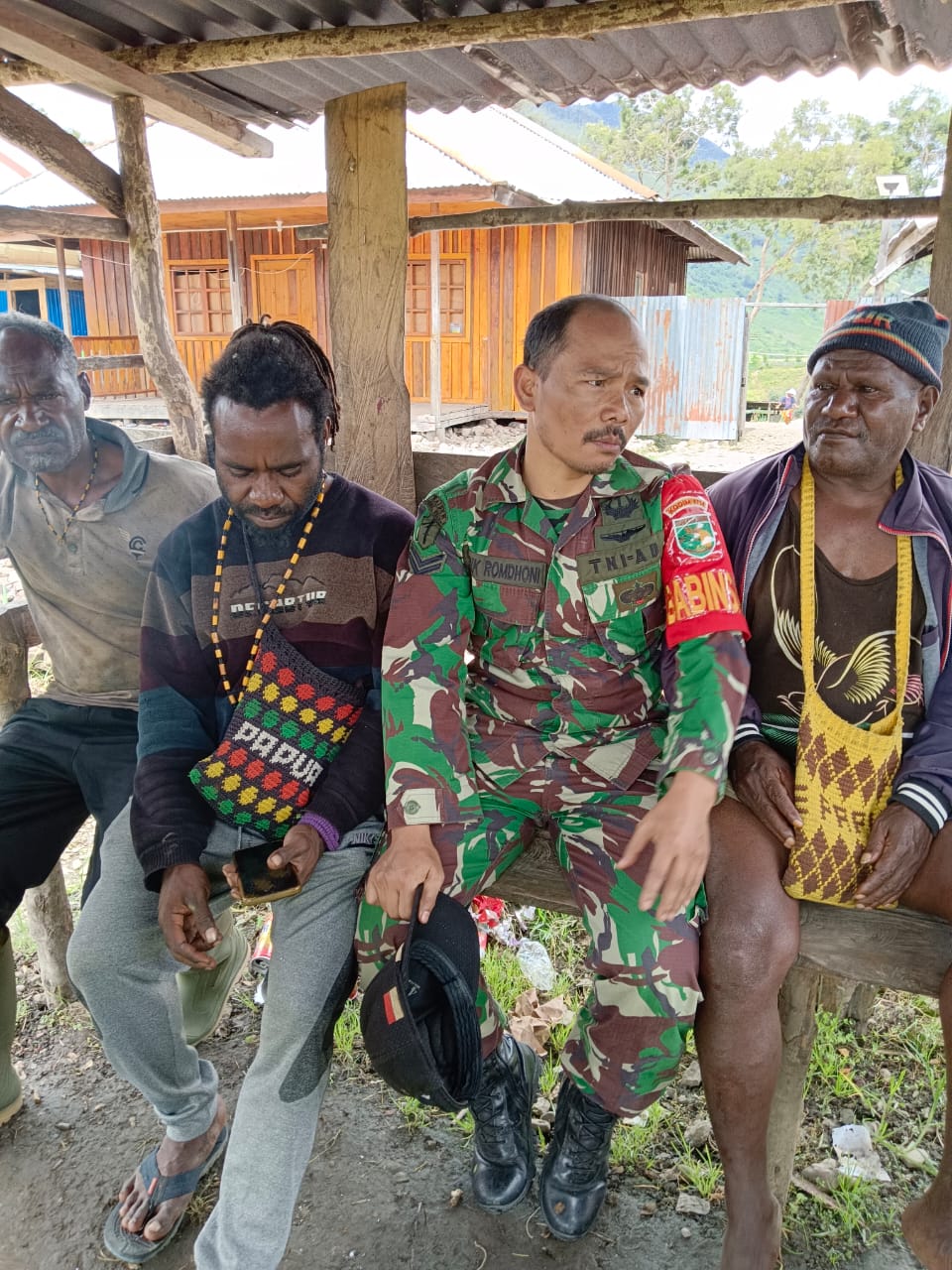 Ilu – Babinsa Koramil 1714-02/Ilu melaksanakan kegiatan komunikasi sosial (Komsos) dengan warga Kp. Wurak, Distrik Ilu, Kabupaten Puncak Jaya, Sabtu (7/9/2024).